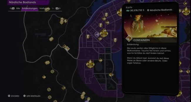 На самом южном краю этой части пустыни, прямо перед Southern Badlands, находится мусорный контейнер, набитый сокровищами. Вы найдете это место к востоку от местной метеостанции. Если повезет, вы даже найдете один из четырех компонентов для Золотого мусоровоза.