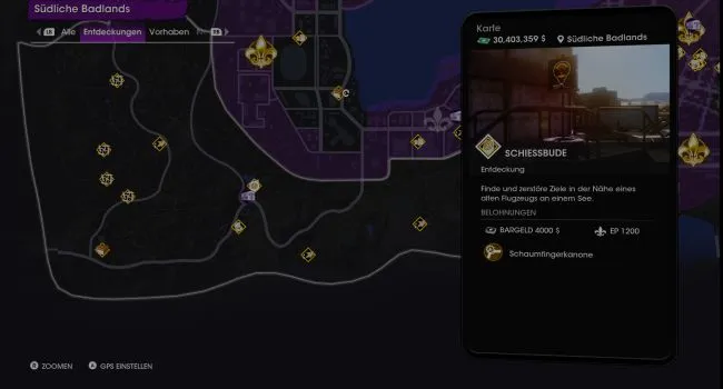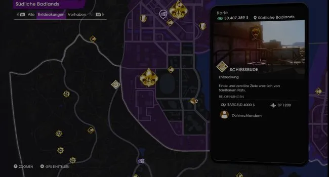Недалеко от границы с Западной равниной находится второй тир в регионе Southern Badlands, а вместе с ним снова 15 мишеней, которые необходимо сбить. Обойдите свалку, на которой находится мишень, по окружающим контейнерам, и вы сможете увидеть и поразить все щиты. Как всегда, здесь может помочь ракетный огонь с вертолета Tornado.