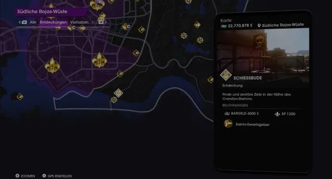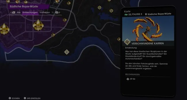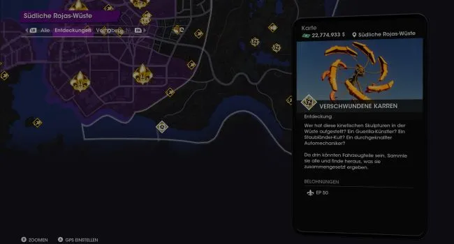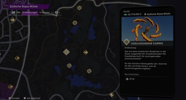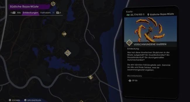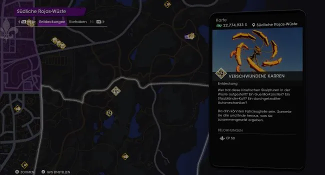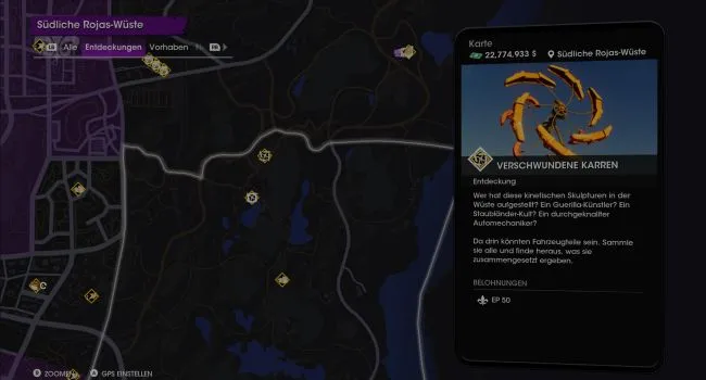 Как и везде в пустыне, на дамбе в Южном районе пустыни Рохас можно найти конструкцию, сделанную из украденных автомобильных деталей. Найдите южную точку этого района и перейдите в самую южную точку карты, после чего конструкция автоматически появится на миникарте.