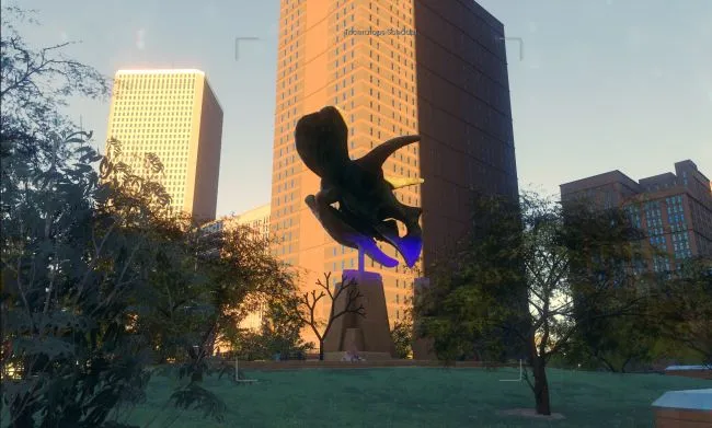 В центре North Lakeshore находится парк, в котором выставлен искомый череп. Сюда же можно попасть, если вы ищете материалы для компании Cutting Edge, в данном случае нефритовый материал. Чтобы получить хороший снимок крупного объекта, необходимо находиться на значительном расстоянии от черепа трицератопса. #