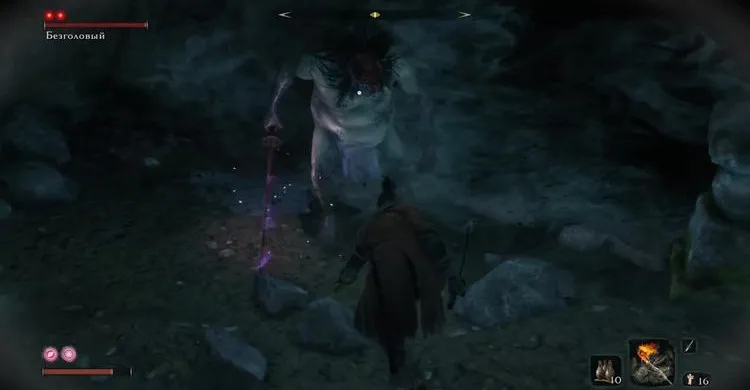 Мини-босс: Безголовый. Спускаемся в темноту, где находится призрак. Отпрыгиваем от ударов большого меча, которые могут вызвать страх. Если полоска страха заполнится мы умрём. Одолеть страх поможет успокоительное или блокировка атак. Во время боя нам может понадобиться конфетти, чтобы нанести еще больше урона призраку Безголового. Убив босса получаем Благословление Ако.