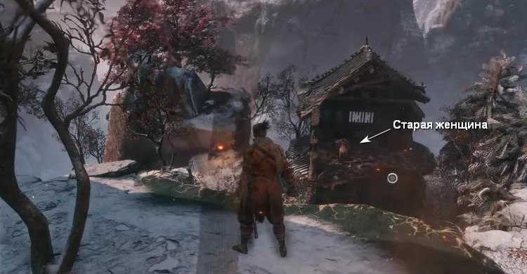 Рядом с дорогой есть еще одно разрушенное сооружение. В нём стоит старая женщина. Если выслушать её, она перепутает нас с собственным сыном. После этого она вручит Колокольчик господина Куро. Внутри дома находится секретная комната с тремя Лёгкими кошельками, в нее можно попасть разобрав кучи вещей. Выйдя на улицу увидим раненого солдата, который на самом деле является сыном старой женщины.