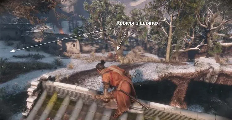 Рядом с возвышенностью есть поле с большим деревом. Около него стоят огромные крысы в шляпах. Можно подслушать их разговор и затем убить маленькую крысу напротив. Две крысы у дерева используют свои шляпы как щиты, поэтому лучше постоянно прыгать и наносить удары со спины. Если ударить по шляпе, крыса начнёт прыгать и распылять яд. Убиваем крыс, получаем Черныё порох и Драже. Идём обратно к человеку в маске и рассказываем, что выполнили его задание. Он награждает нас, раскрыв Тайное учение стиля Асина.
