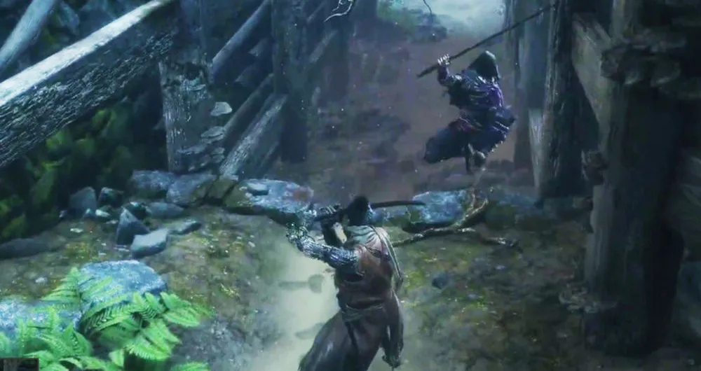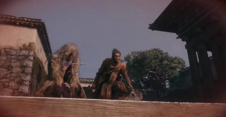 Мини-босс Мечник Одинокой тени. Спускаемся в яму и идём по туннелю. Впереди нас будет ждать самурай. Поговорив с одноруким врагом, начнётся бой. Это достаточно лёгкий враг. В будущем он будет достаточно часто встречаться, поэтому стоит научиться драться с ним. Его пинки можно парировать, а против выпадов используем микири. Убив его получим Бусину от Чёток. Если пройти через туман, проплыть через канал и зацепиться за выступ, что бы подняться выше, то мы попадём в новую локацию. Но пока не используем этот пусть.