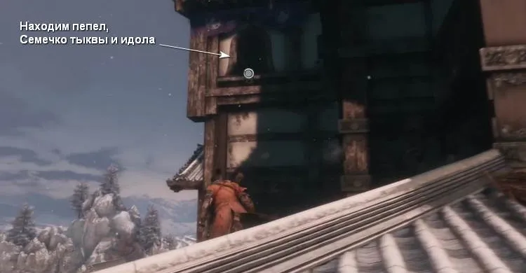 Продвигаясь по крышам слева, сможем найти Леденец Унго и Глиняный осколок. Теперь мы будем чаще встречать огненных полуночников, прыгающих с воздушного змея. Убиваем их и собираем бонусы. В конце нас ждёт самоубийца, который заметив нас, подбегает ближе и взрывается. Но в то же время к нам полетит очередной пернатый. Поэтому привлекаем внимание подрывника и отбегаем, чтобы начать бой с прилетевшим огненным воином. Убив его, поднимаемся в открытое окно в здании слева. В комнате находим пепел, Семечко тыквы и идол.