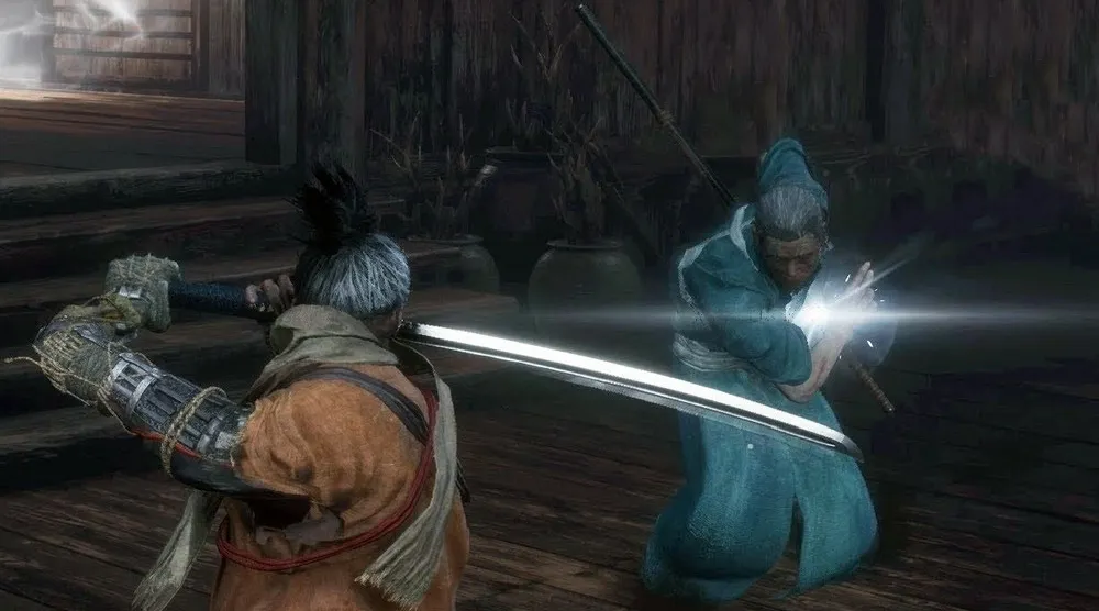 Босс: Элитный боец Асина — Дзинсукэ Садзэ. Мастер в синей одежде достаточно сильный, у него есть три основные атаки. Он наносит неблокируемые удары своим длинным мечом и имеет высокую скорость передвижения, поэтому от него сложно увернуться. Лучшей парировать его двойные удары (подобрать тайминг и два раза кликнуть мышкой), тогда он будет наносить урон сам себе. Также стоит обратить внимание, что после каждого удара он убирает свой меч. Это хороший момент, что бы нанести ему два обычных удара, затем еще два в прыжке и в конце использовать вихрь. Как и всегда, после убийства босса, получаем Бусину от четок. В центре алтаря лежит Печень угря (снижает урон от удара молнией). А на стене висит «Свиток о старой битве» с полезными советами для боя со следующим боссом.