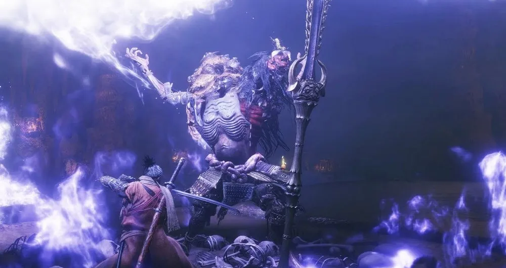 Стараемся находиться рядом с ним, тогда Босс менее опасен. Прыгая на какое-то место он на мгновение зависает, в это время подбегаем, наносим удар и продолжаем ближний бой. После победы получим Церемониальный танто (Кинжал превращает запас жизни в эмблемы).