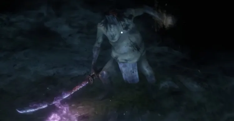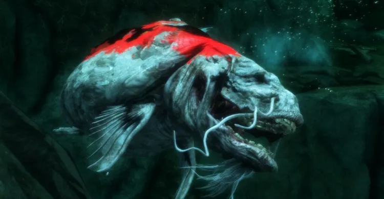 Выплываем наружу и идём к женщине, рассказавшей нам про монстров-вельмож. Теперь она поведает о своём отце, которого зачаровал Великий карп и просит освободить его. Снова обходим дворы, чтобы выйти из них и сохраниться у идола Резчика, стоящего у деревянного моста.