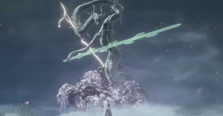 Босс: Божественный дракон. Появляется эпичный белый змей с прозрачным мечом. Мы не сможем подойти близко к нему. Смысл боя заключается в том, чтобы залезать на деревья и направлять потоки молний во врага. Дракон отталкивает нас и пытается ударить мечом. Уклоняемся от крутилок и бьём молниями. Во время комбинаций ударов босс убирает деревья, мы можем блокировать атаки и уклоняться от них. В конце нам надо забраться по его мечу или притянуться к голове, чтобы достать Слёзы Божественного дракона. За победу над боссом получим Воспоминание о нем.
