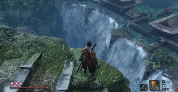 Основным врагом в этой локации являются воительницы клана Оками. Люди, потерявшие человеческий облик в процессе получения бессмертия. Они атакуют с помощью стрел, меча или нагинаты. Убиваем их (Сабимару накладывает на них смертельный яд) и подбираем Шар Воскрешения у первого домика. Затем осматриваем крыши и собираем Лёгкий кошелек, Глиняный осколок. Под одной из них найдём Твердый металл, а на правом мостике лежит Кусок трупного жировоска.