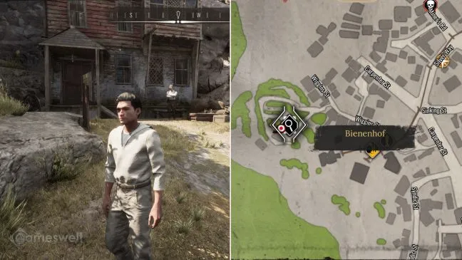 Некоторые фрагменты текста становятся видимыми. На этом мы завершаем эту часть исследования, пора поближе познакомиться с пчелиным королем. Покиньте склад и побродите по улицам Майнерс-Энда рядом со складом. Используйте булавку "Письмо от Б" и наденьте простую матросскую одежду. Это поможет вам найти человека, который расскажет вам, что пчелиный двор находится к западу от улицы Виггинс.