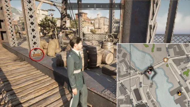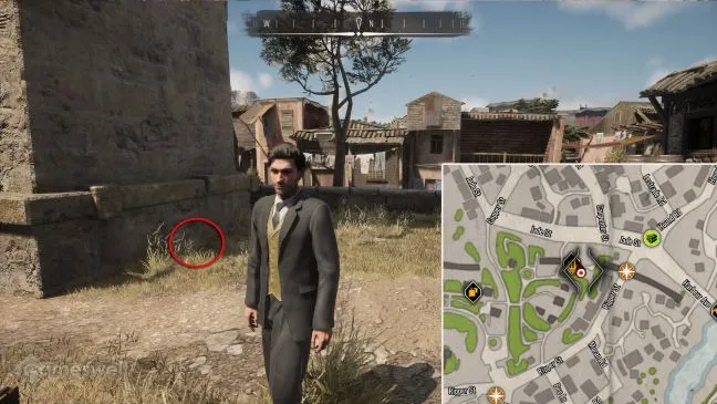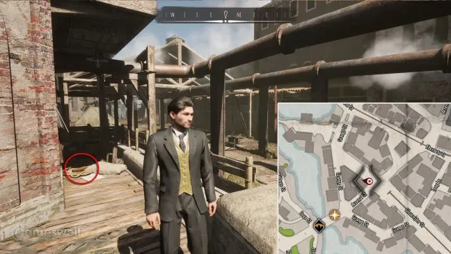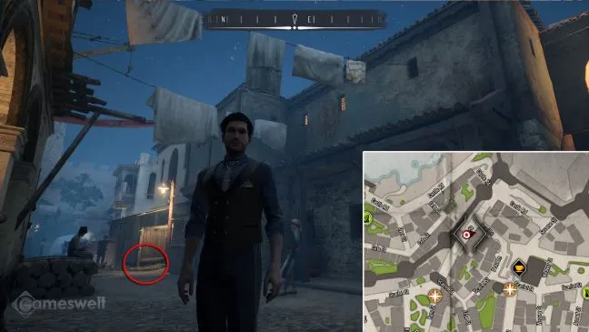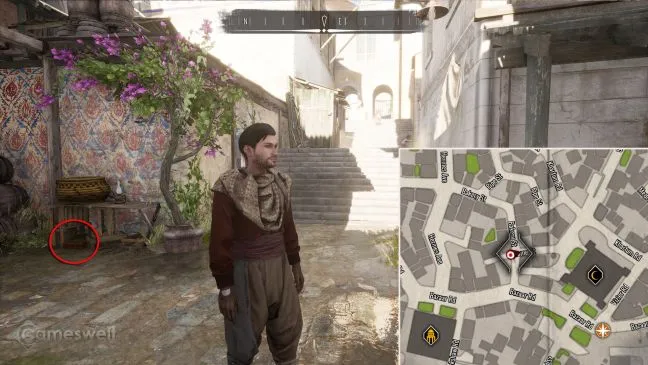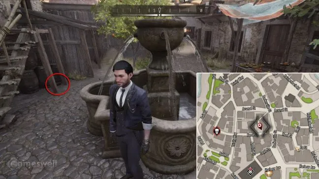 Уединенный рынок, о котором идет речь, расположен к северу от полицейского участка в Скаладио. Попасть на него можно по улице Баскервилей на углу с Арсенальной улицей через большую арку. Зайдите внутрь и найдите деревянную лестницу рядом с фонтаном. Под деревянной лестницей находится сокровище.