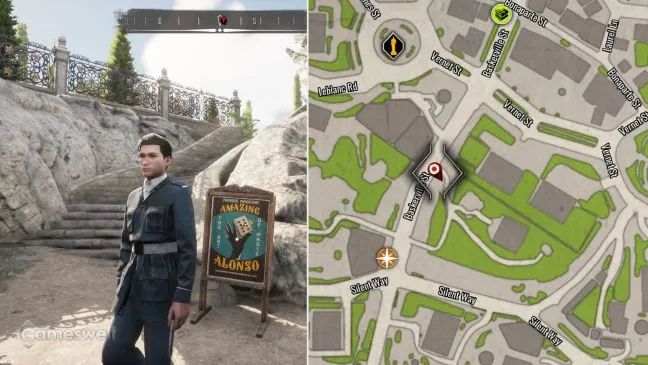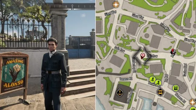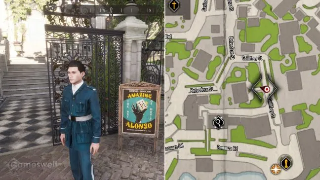 Сначала отправляйтесь на улицу Галлифрей, между улицей Бельведер и Бонанза-роуд. Гранд-Сарай. Это поместье леди Грубер. Считается, что в него проникли во время магического шоу. Если вы пересядете в пункте быстрого перемещения Promenade Square, то окажетесь прямо на нужной вам улице. Перед домом находится вывеска с рекламой "Удивительного Алонсо".