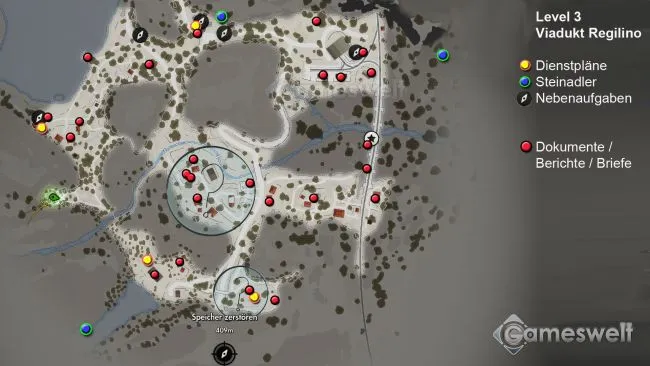 Игровой уровень вокруг виадука Регилино проходится гораздо легче, чем предыдущий, но при этом он гораздо длиннее. Отчасти это связано с тем, что можно выполнить больше побочных заданий. Во вступлении снова поговорите с побочными персонажами, чтобы они дали вам побочные задания, затем воспользуйтесь рацией и начните миссию.