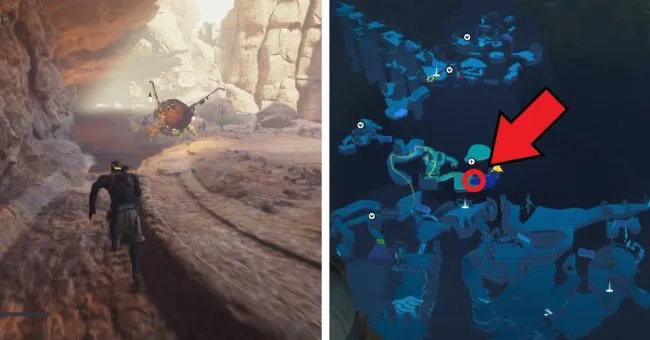 Чтобы получить краба Глотцама, отправляйтесь к точке медитации "Липкое болото". Развернитесь и с помощью альпинистского троса перепрыгните на остров, расположенный позади вас, где находится небольшая хижина. Слева от хижины идите к краю, где на берегу можно увидеть ялик Сковы.
