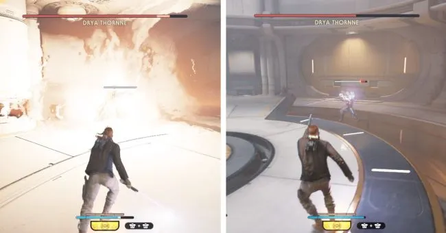 Но что действительно здорово, так это то, что Кэл теперь подбирает большой световой меч своего противника, чтобы модифицировать с его помощью свое собственное оружие. Таким образом, вы получаете световой меч с парирующим стержнем, как у Кайло Рена из сиквелов. Так что при желании теперь можно использовать стиль боя с парирующей планкой. Это довольно сложно, но зато вы быстро прорветесь сквозь вражеские укрытия. Кроме того, он повышает выносливость и хорошо подходит для оборонительного стиля.