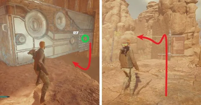 Чтобы пройти дальше, необходимо решить небольшую экологическую головоломку. Сначала используйте силу, чтобы открыть заслонку в задней левой части комнаты. За ней вы увидите веревку. Потяните ее к себе с помощью Силы, пройдите как можно дальше в проход перед вами, затем отпустите и сразу же примените магнит Силы к блоку в задней части прохода, чтобы вытащить его из-под опускающейся двери до того, как она закроется.