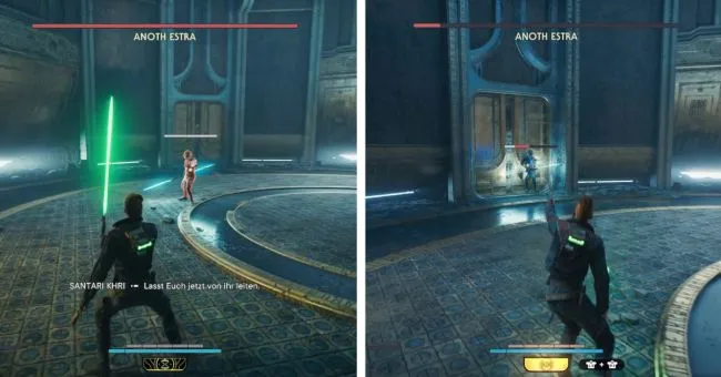 Если вы сражаетесь в стиле бластера, вы снижаете выносливость противника выстрелами, а затем наносите удары. Если Анот бьет Эстру в ответ, вы просто блокируете и сводите его выносливость к нулю. Единственный неприятный момент - это когда Эстра удерживает вас своей веревкой или висит на ней, а затем перекидывает вас через себя, как Тарзан на лиане, и повторяет атаку с вращением. В этом случае просто уклоняйтесь в сторону. В итоге можно сказать, что это один из самых легких боев с боссом в игре, так что вы должны справиться с ним даже на более высоком уровне сложности.