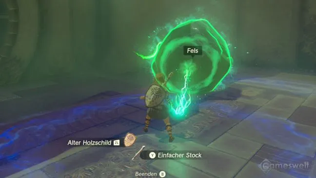 Во втором святилище на острове Скай вы узнаете о силе синтеза. Она позволяет Линку соединять оружие и щиты со всеми мыслимыми предметами. Это делает их более прочными и устойчивыми. Поэтому они не так быстро ломаются.