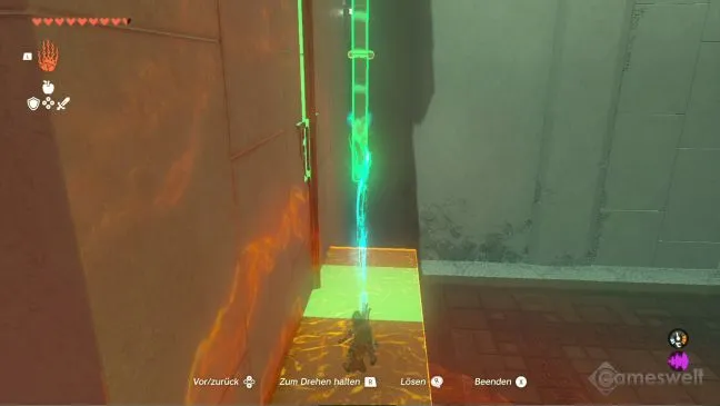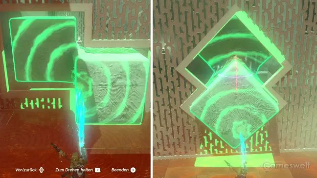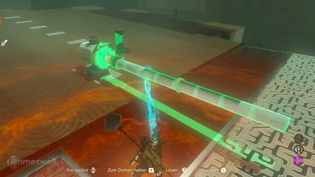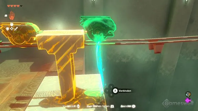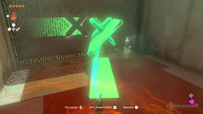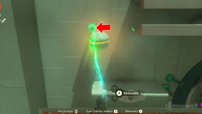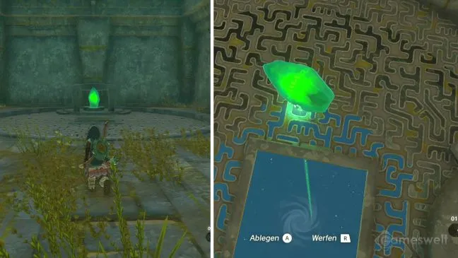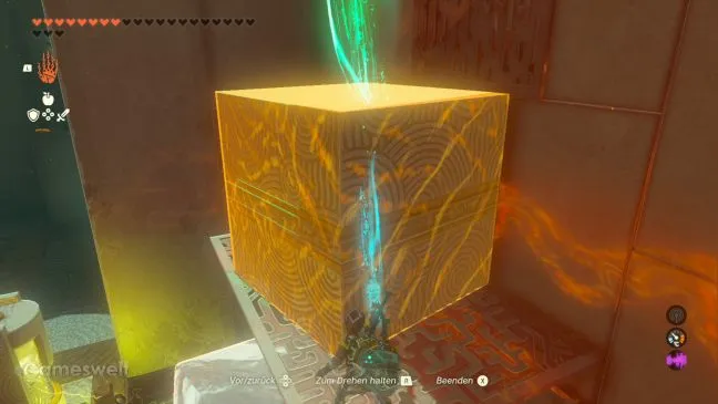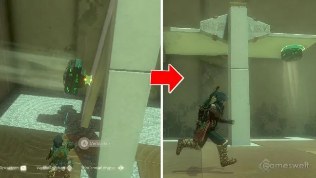Теперь используйте конструкцию в качестве моста, чтобы перебраться через щель в полу. В следующей комнате сделайте то же самое с приклеенными кубиками, которые Вы найдете справа. Однако для второй щели вам придется снова повернуть эту фигуру. Эта святыня предназначена для обучения использованию Ультраруки и служит только для тренировки, а не для проверки интеллекта.