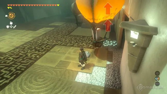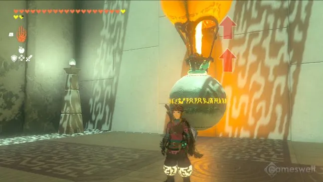 В первой комнате святилища находится веер Sonau. Возьмите его и поставьте перед стеной на следующем уровне. С помощью сверхмощной руки поверните вентилятор так, чтобы он дул вверх, когда вы его активируете. Чтобы активировать его, нажмите на него один раз.