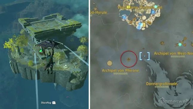 Чтобы найти эту святыню, нужно перенестись в небо с башни в Поплар Хайлендс. Затем в полете поверните на запад (точнее, на запад-юго-запад) и держите курс до тех пор, пока не приземлитесь на небольшой небесный остров с квадратным зданием. Это часть архипелага Фирон.