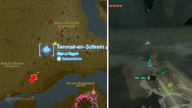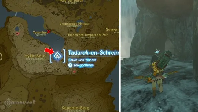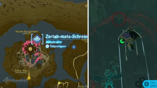 Это святилище находится в дальнем конце плавучего замка Хайрула. Добраться до него можно, спустившись в воздух с вышки на посту разведчика, но для этого потребуется много выносливости. На крайний случай возьмите с собой лекарство от выносливости или еду для выносливости, чтобы успеть взлететь. Также не задерживайтесь в этой зоне, если вы не полностью готовы к концу, потому что здесь небезопасно. Лучше сразу войти в святилище.