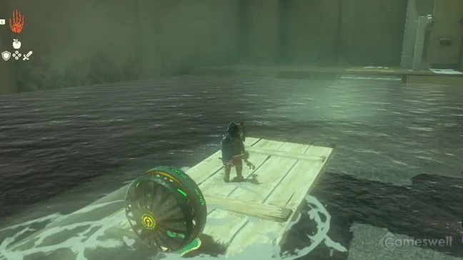 Оказавшись на вершине, Вы должны построить плот из нескольких стволов деревьев и привести его в движение с помощью двух вентиляторов Sonau, чтобы плыть по воде против течения. Эта задача не должна представлять для Вас сложности, даже если Вы только начали игру. Просто склейте бревна вместе и прикрепите к одному концу два вентилятора, направленных против направления движения. Запустите плот, нажмите на один из вентиляторов, чтобы запустить его, и отправляйтесь в путь. Это приведет вас к сундуку с сокровищами (на западной стороне воды) и к месту назначения.