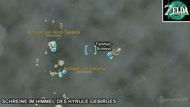 Святилище Таунхидзё расположено на архипелаге в центре небесной области над горами Хайрул (обозначается как Внутреннее воздушное пространство Хайрула) и называется Островом героического мужества. Святилище появится только после того, как вы пройдете Испытание доблести, в ходе которого нужно будет прыгнуть с самого высокого небесного острова этого архипелага и пролететь через кольца. Когда вы пролетите все кольца и приземлитесь в воду на самом нижнем целевом острове, появится святыня.