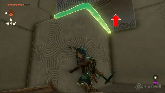 В зоне входа в святилище используйте талант прыжка с потолка, чтобы пробраться под небольшим выступом через потолок и попасть на более высокий уровень.