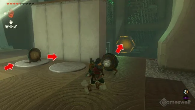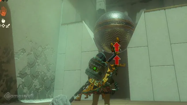 Однако, поскольку зафиксировать шар невозможно, его нужно снова на некоторое время задержать на уровне металлического прута, отпустить и с помощью реверса времени вернуть в нужное положение, пока вы бежите через дверь к месту назначения святыни.