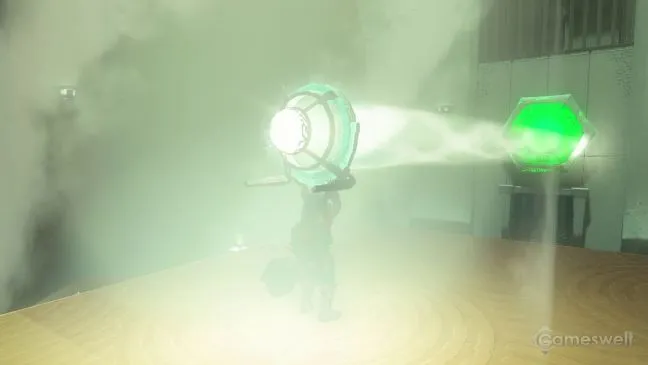 В следующей камере необходимо выровнять зеркало на расстоянии, так как между ним и зеркалом находится решетчатая стена. С помощью ультраруки переместите и поверните зеркало так, чтобы отразить луч света обратно на бронзовую поверхность. Это откроет следующую дверь