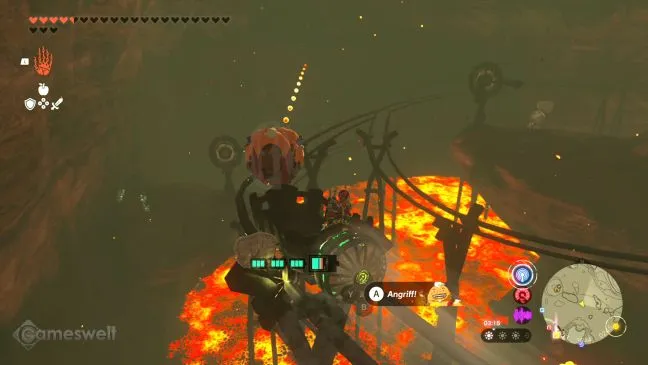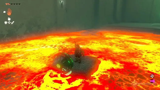 Попасть в нее можно, войдя в туннель острова Крааб. В этой пещере очень жарко, поэтому вам понадобится огнеупорная одежда, а также сила Юнобо над огнем (см. главу нашего основного квеста "Юнобо из Горонии"). Чтобы найти это святилище, нужно проехать по рельсам пещерной системы на грузовике, переключить переключатели с помощью Юнобо и попасть в дальний конец участка туннеля.
