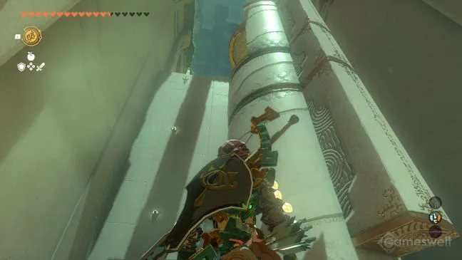 В этом святилище вращается большая башня. Она имеет несколько выступов, через которые теоретически можно было бы пробраться, спрыгнув с потолка. Однако отдельные выступы находятся на таком расстоянии друг от друга, что до всех не дотянуться.