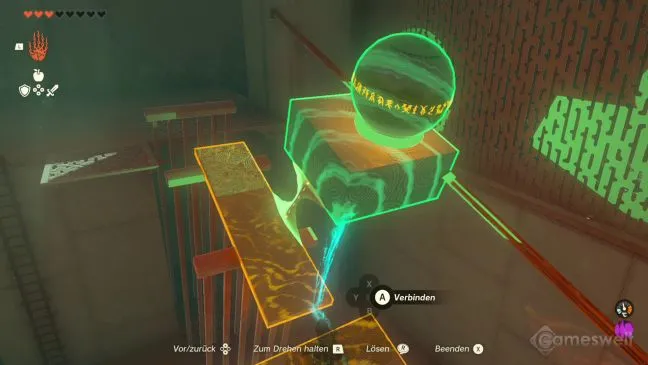 Теперь активируйте ультраруку и с ее помощью направьте камень и шар по рельсу. Как можно выше. В высшей точке досягаемости удерживайте все в течение некоторого времени.