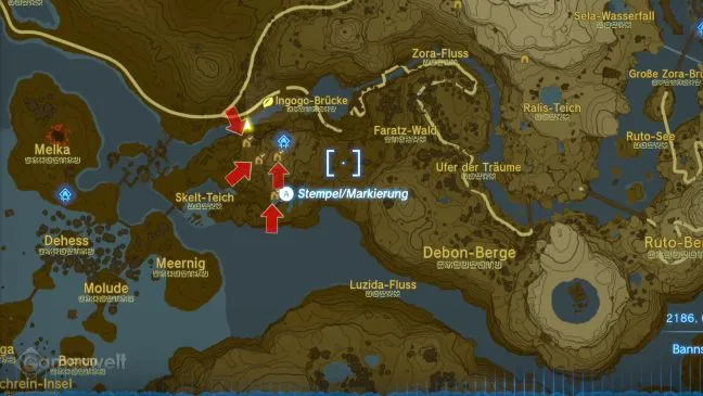 Исследуйте восточную пещеру Skelt Pond East, расположенную рядом с мостом Ингого в западной части реки Зора, чтобы найти это святилище. В пещеру можно войти с четырех сторон на разной высоте, но только два самых нижних входа (северный и южный) приведут вас на нижний уровень к майои. В верхней части пещеры обитают бокблины, которых сначала нужно убить. Так вы сможете не только освободить пленника, но и найти святилище в скрытом проходе дальше по пещере.