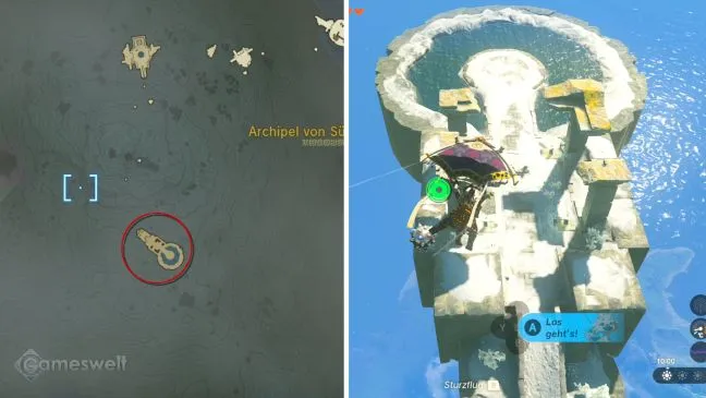 На этом острове вы найдете конструкцию слуги. Поговорите с ним, чтобы начать церемонию свупинга. Это мини-игра, в которой нужно пролететь через кольца в быстром пикировании. Прежде чем приступить к игре, необходимо сначала пройти тренировочный раунд. Начните игру (Island of Daring) у переключателя круглого портала и погрузитесь в глубины.