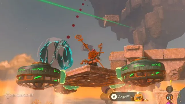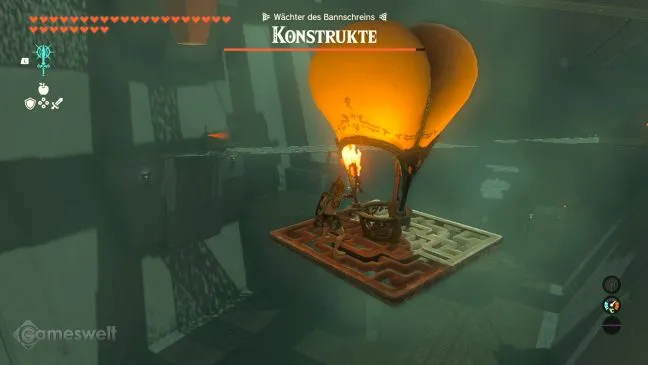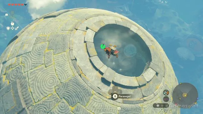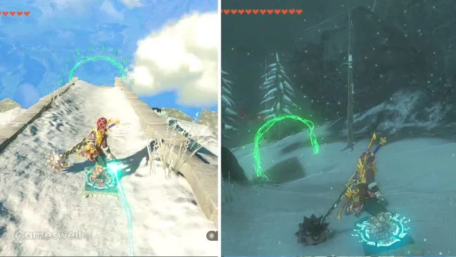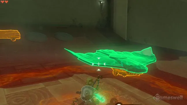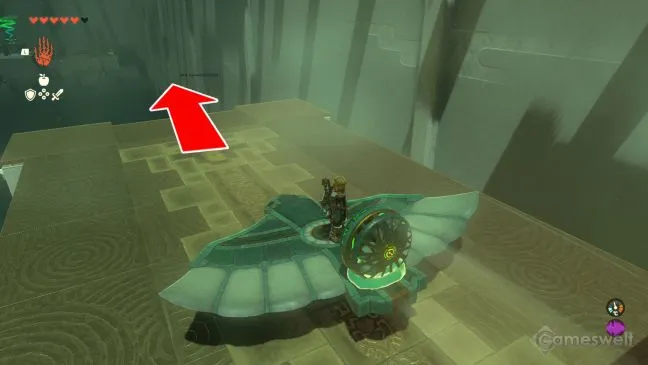 В зоне входа в святилище в крайнем левом углу находится планер. Поставьте его на наклонный рельс и переместитесь с ним на платформу в западной части святилища. Пройдя немного дальше по этой стороне, вы найдете транспортеры Sonau - они похожи на широкие скейтборды или роликовые доски для мастерских. Прикрепите планер, который вы только что использовали, к одному из этих транспортеров так, чтобы планер был приклеен к транспортеру. Таким образом, у планера появляется шасси.