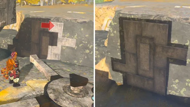 Внутри святилища находятся странные маленькие камни. С помощью ультраруки сориентируйте их так, чтобы они образовали лестницу, по которой можно подняться. В следующем проходе с помощью ультраруки соедините один из этих камней с большой решеткой на стене и поместите ее над пропастью, чтобы можно было пройти.