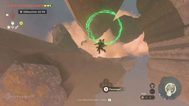 В полете осторожно меняйте положение Линка на планере, чтобы направить его в нужную сторону. Когда вы захотите приземлиться, просто опустите нос планера, подавшись вперед. Теперь остается только получить награду.