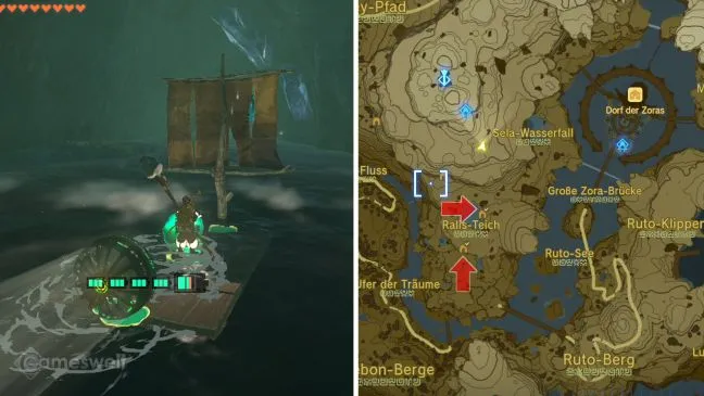 Рядом с прудом Рали к югу от башни в нагорье Зора находится пещера под названием Канал Рали. В нее можно войти с двух сторон. В канале лежит зеленый кристалл. Постройте плот из досок рядом с ним, паруса и вентилятора (элемент управления тоже не помешает). С его помощью перевезите зеленый кристалл в канале через пещерную реку. Вы поплывете под землей к башне в нагорье Зора. Так вы решите квест "Святилище в канале Ралиса".