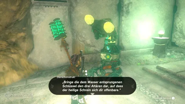 Эта святыня глубоко спрятана в пещере Айхзее. Чтобы попасть в него, необходимо принести зеленый кристалл в рамку святилища.