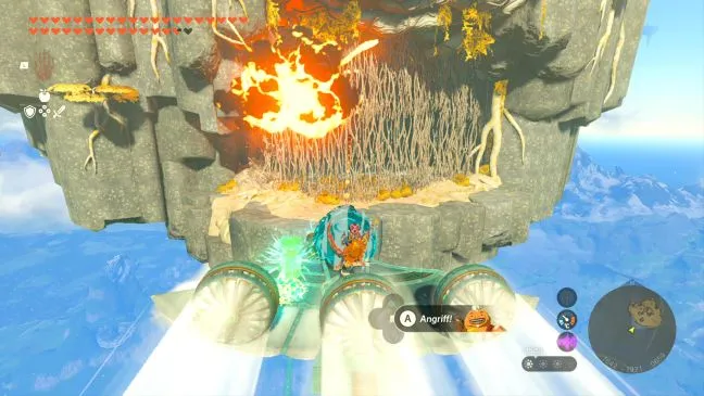 С помощью катапульты, расположенной в центре острова, переместитесь на соседний остров (восточнее) и возьмите там компоненты для самолета. Соберите его и установите хотя бы одну из пушек Sonau, лежащих рядом. Если теперь вы взлетите по трапу, то в мгновение ока ока окажетесь в пункте назначения, указанном зеленым лазером, но чтобы попасть внутрь, придется прорубаться сквозь сеть ветвей.