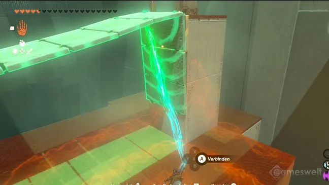 К сожалению, последний мост вообще нельзя растянуть, потому что не найти ничего, к чему его можно было бы прикрепить. Только деревянная балка, но это не позволяет приклеить его надолго. Решение простое: натяните мост на деревянную балку и подержите его некоторое время. Затем отпустите мост, вернитесь в начальную зону и воспользуйтесь обратным ходом времени.