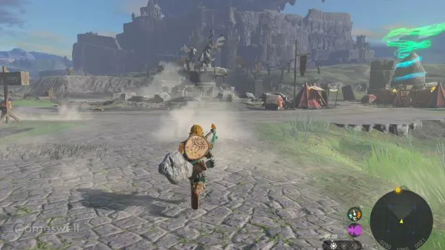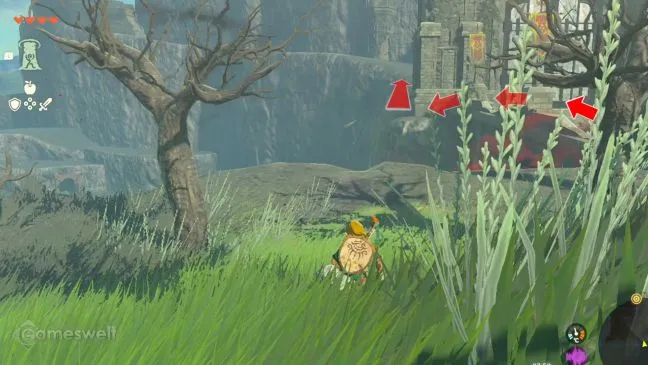 Он расположен на территории замка. Вернее, у его остатков, поскольку основная часть замка парит в небе. Итак, идите на север от поста разведчика через руины Хайрул-сити.