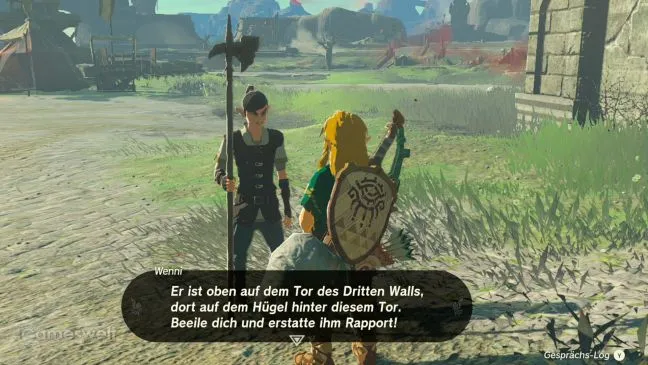 Здесь вы встретитесь с директором Пурахом, который отправит вас на поиски пропавшей принцессы Зельды. Правда, сначала вам следует присоединиться к сформированному отряду разведчиков.