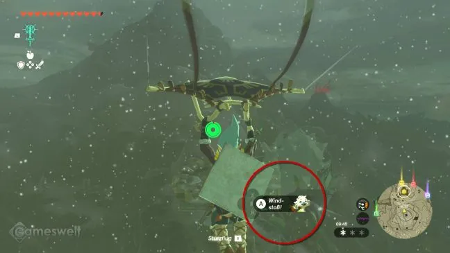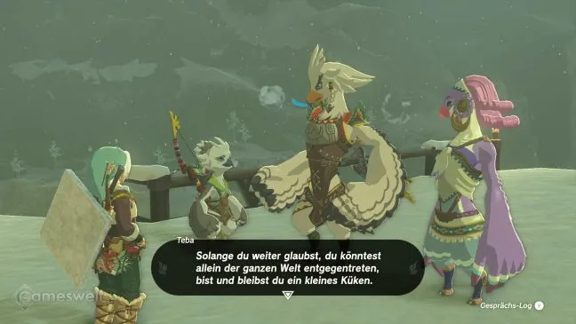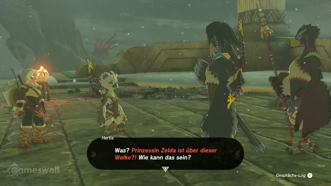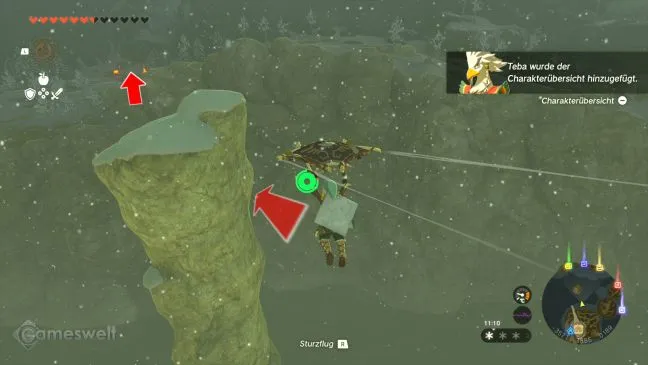 Линк и Тулин решают исследовать его вместе. Из-за ветра попасть внутрь можно только сверху. Если работать вместе, то это будет проще простого! Вместе с Тулином доберитесь до небесной лестницы на пике Хебра. Она находится всего в одном прыжке к востоку от вас.