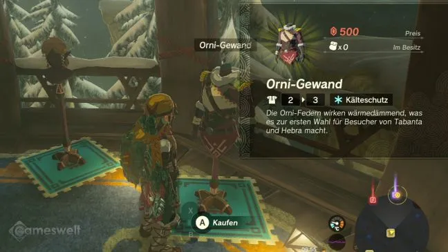 Теперь бегите в деревню. Лестница приведет вас в ее центр мимо нескольких магазинов. Там нужно купить (если не сразу, то как можно скорее) халат Орни. Он защищает от холода, не требуя еды и лекарств.