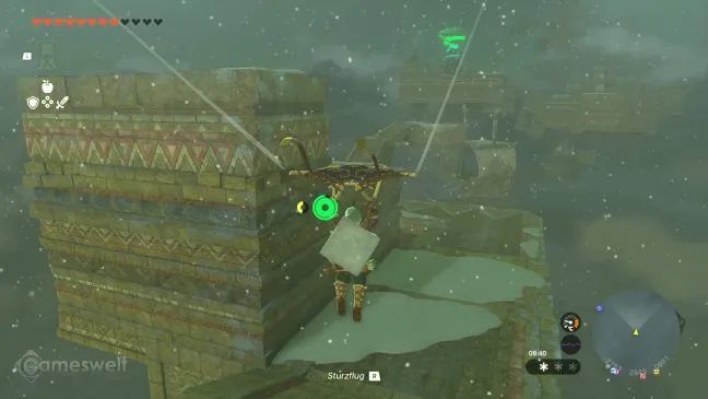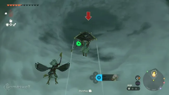 Перехватите падение за мгновение до столкновения с землей, чтобы благополучно приземлиться на большой корабль. Перед приземлением игра покажет вам, что речь идет о храме ветра, и запустит небольшую сцену.