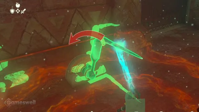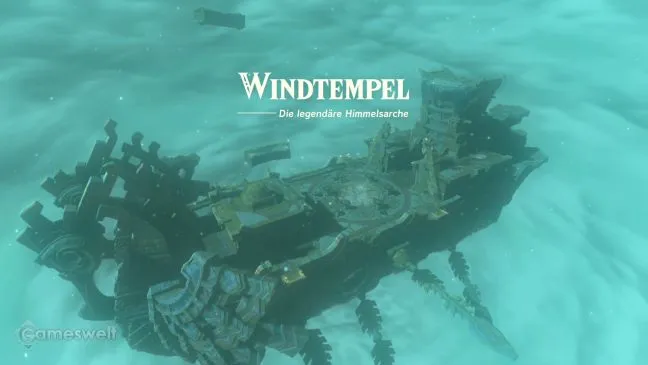 Если у вас с собой есть Тулин, то вы можете сразу же приступать к работе. На верхней палубе большого корабля находится переключатель в виде небольших круглых ворот (такой же, как в святилищах, когда вы собираете благословляющий свет). Активируйте его, чтобы шестеренки двигателя корабля опустились вниз. Однако большой шестистворчатый люк верхней палубы не открывается, так как часть механизма заклинило. Двигается только одна из шестеренок.